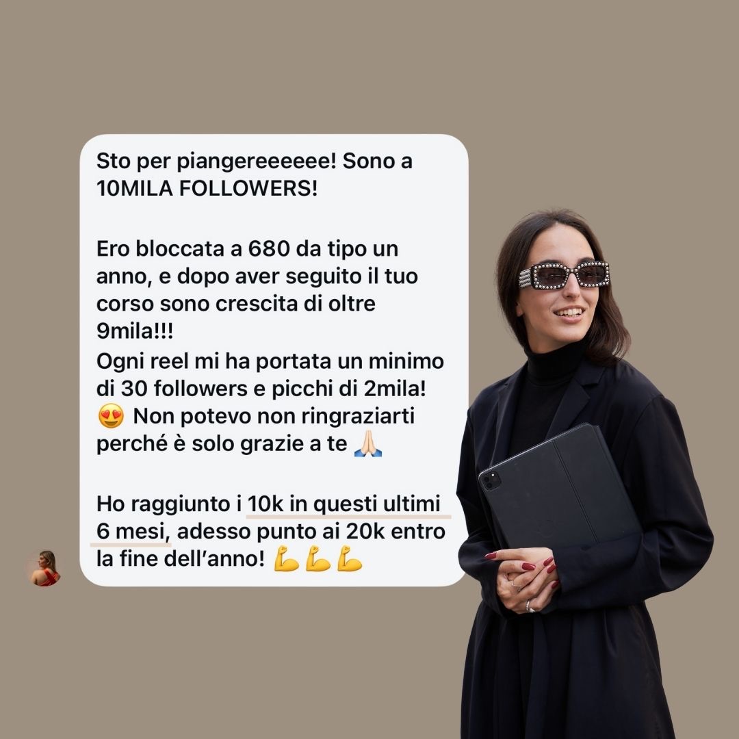 “Ho seguito tutti i tuoi consigli e sono crescita di 450 nuovi followers in un solo mese! Ieri una ragazza mi ha chiesto di fare una consulenza.”